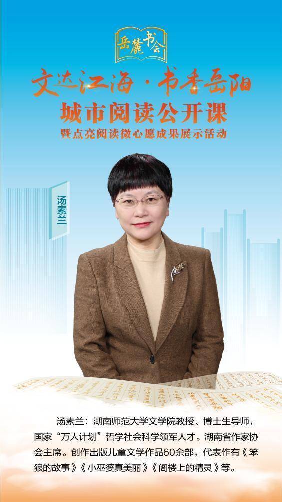 11月23日下午广州配资网,“文达江海·书香岳阳”城市阅读公开课暨点亮阅读微心愿成果展示活动将在岳阳文化艺术会展中心举行。本次活动将以“水文化”为核心,深度融合大江大湖之韵与书香之美广州配资网,旨在赓续湖湘文化基因广州配资网,推动全民阅读氛围的提升。汤素兰、陈更等名人大咖将齐聚岳阳,共同点亮岳阳城市阅读之光。